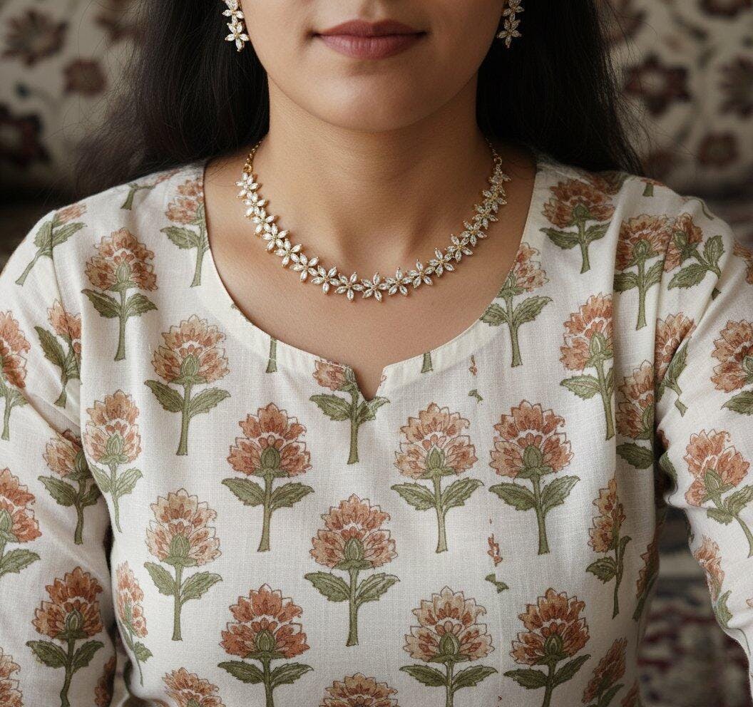 "Been wearing this non-stop since I got it last week. It's so light and comfortable for daily wear. I was worried it might look too flashy for office but it's very elegant. Got so many compliments from my friends. The quality is amazing for the price. Doesn't look like artificial jewellery at all. A must buy!"