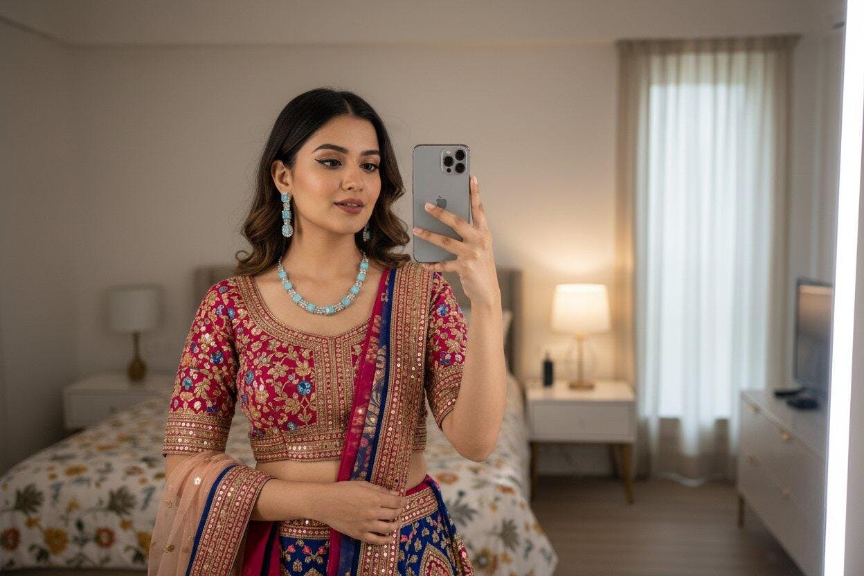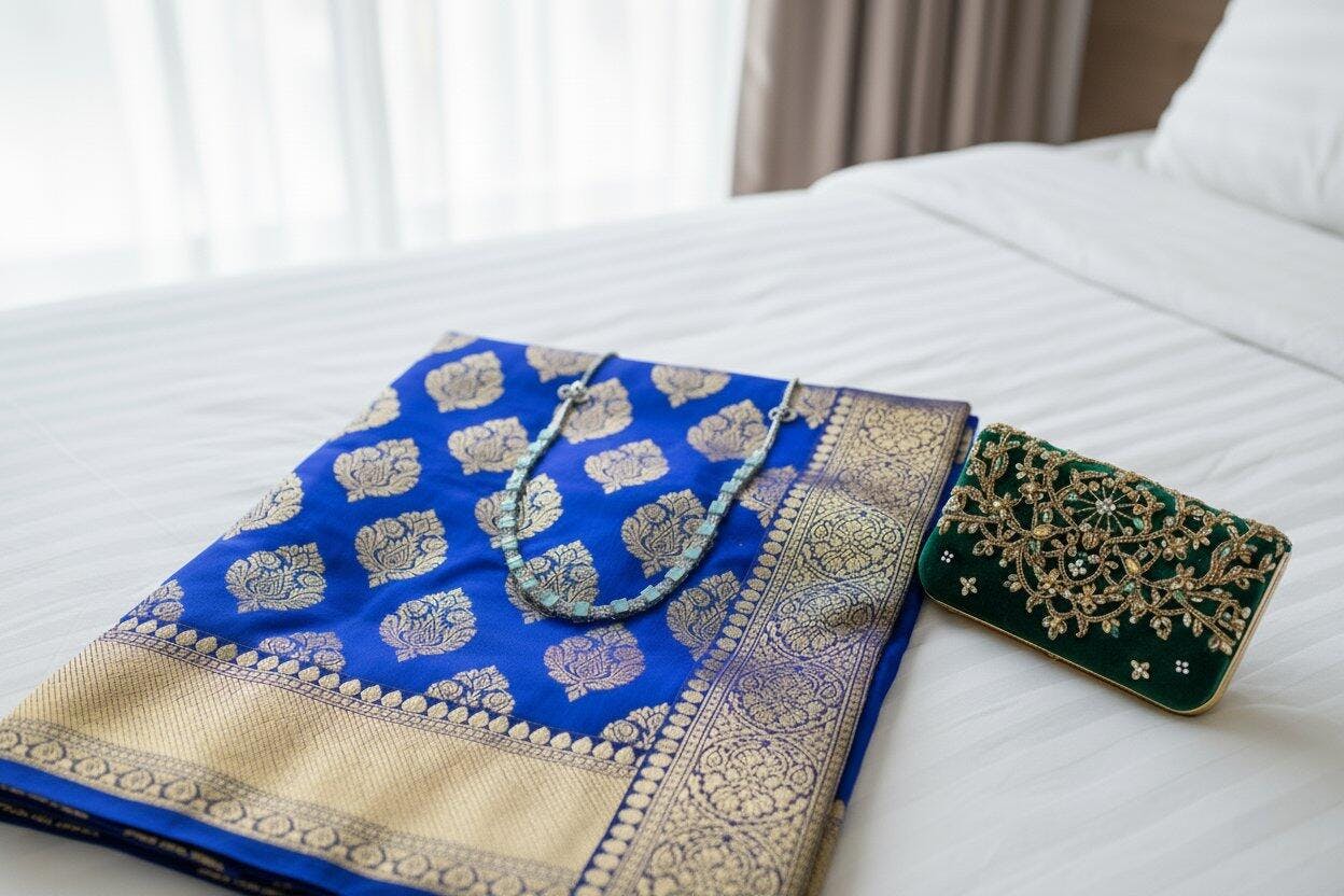 This set has a very lovely, traditional design which is perfect for pujas and temple visits. I wore it for our Navaratri celebrations at home. It is very elegant and not too flashy. The quality is very good for the price I paid. Very happy with this purchase.